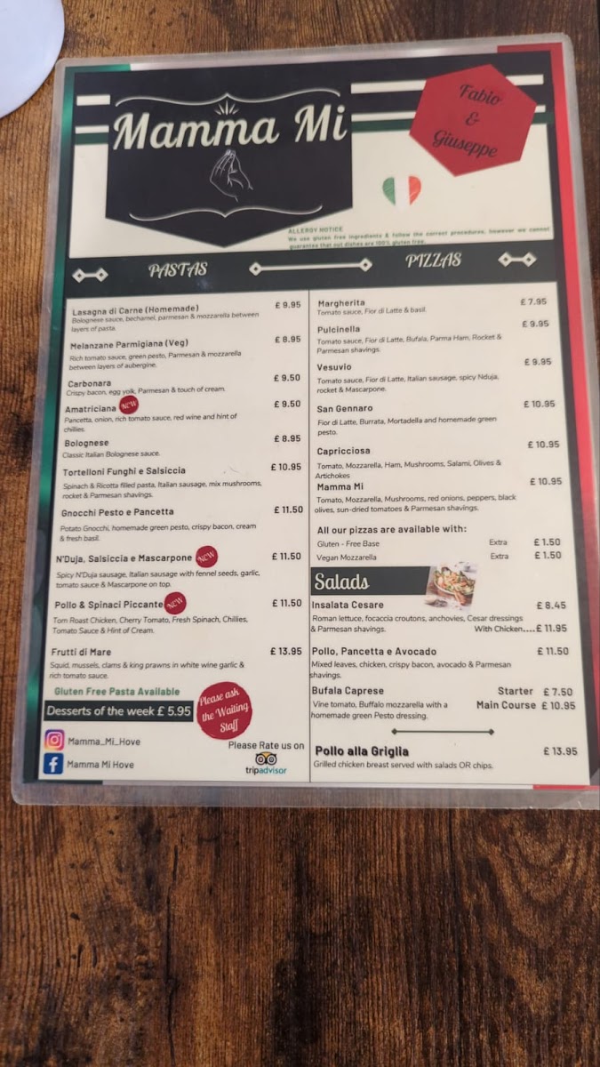 Introducing the menu at Mamma mi hove, a hidden gem located at 35 George St, Brighton and Hove. The culinary offerings are a delightful fusion of authentic Italian flavors, bringing a taste of Naples to the UK. Whether you're in the mood for comforting Pollo Crema E Funghi or savory Polpette Pomodoro E Parmigiano, every dish reflects a dedication to quality and tradition.